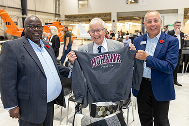 Mohawk College President Paul Armstrong thanked MacRitchie for his investment in students and the aviation campus, which was created in partnership with the Hamilton airport and aviation companies such as KF Aerospace and Boeing.